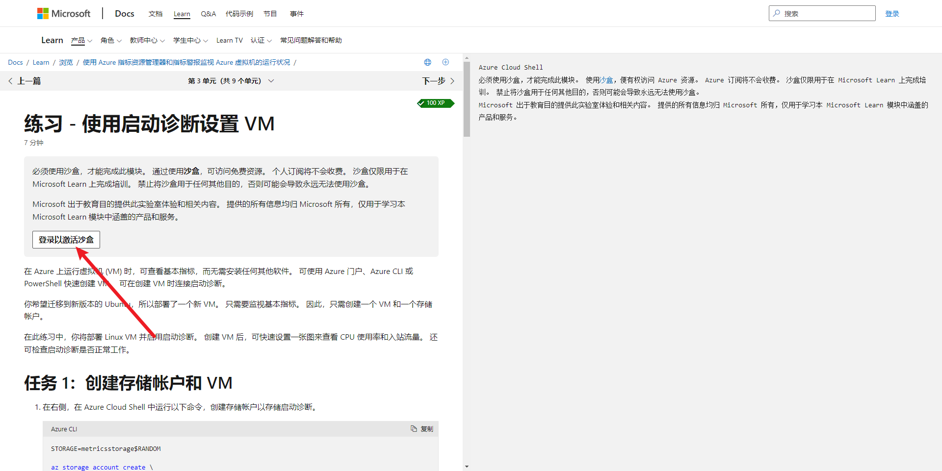 本教程使用 Azure Cloud Shell 在 Microsoft Learn 沙盒上创建虚拟机。