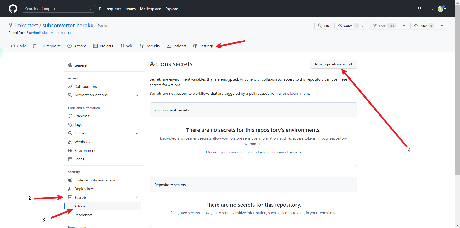 和HEROKU_EMAIL的Secret。说明如下: