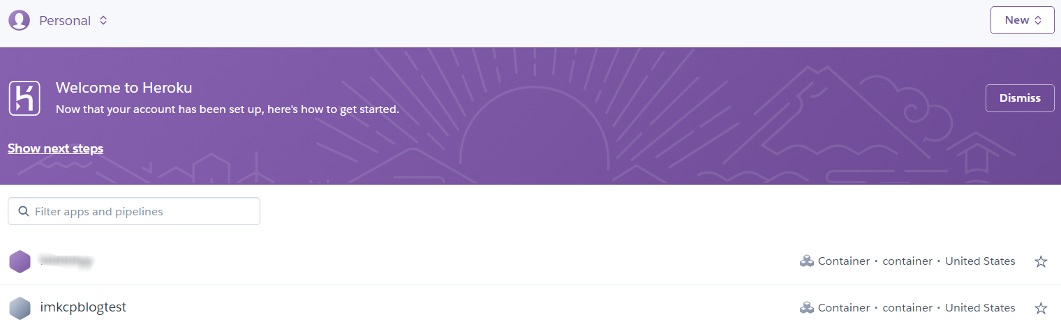 同时,heroku账号首页也多了一个项目